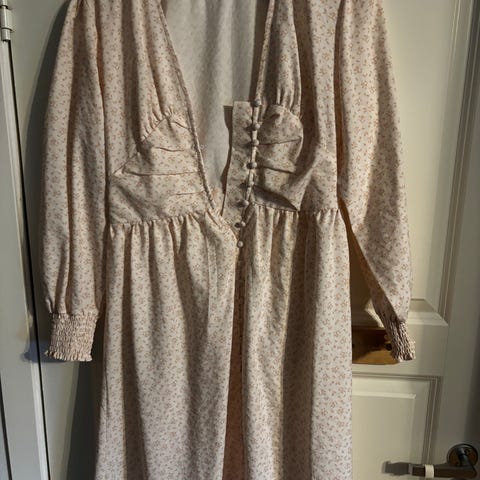 BYIC sommerkjole i størrelse S for dame. Kjolen er laget av 100 % polyester og har et flerfarget mønster i røde og rosa toner på lys bunn. Modellen har lange ermer og ankellengde, med plissért struktur i stoffet som gir elastisitet og god passform. Passer til bruk på varme dager, til hverdags eller enklere selskapeligheter.