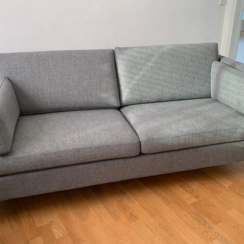 Selger to 2,5-seters sofaer fra Bolia Scandinavia i lys grå ( Nantes - Light Grey) med dunfyll. Begge sofaene er i god stand uten skader eller rifter. Fargen er noe falmet på baksida på grunn av sol og tid. Sofaene er svært komfortable og har mange gode år igjen.
