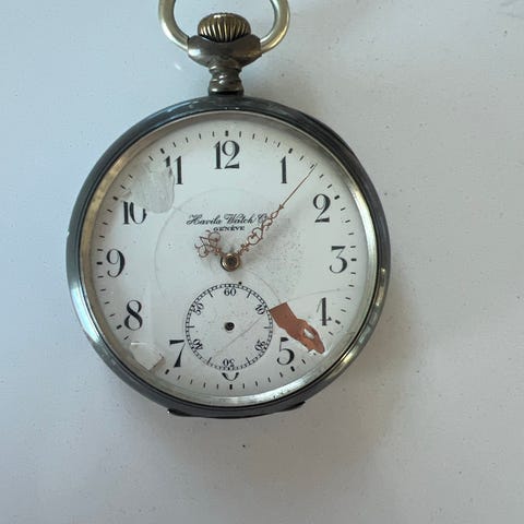 Tilstand: Uret fungerer ikke og selges som reparasjonsobjekt. Sekundviseren ligger løs under glasset.