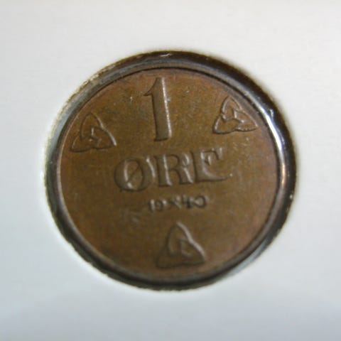 1 øre 1912 kv 0 strøken mynt ,selges kr 6500.-+ porto Norgespakke med sporing