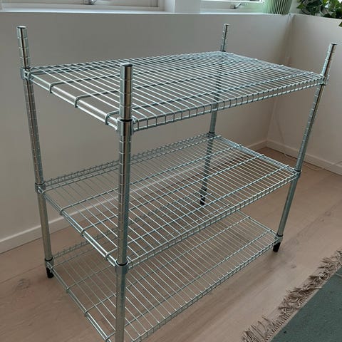 Hyllen har åpne nettinghyller som gir god oversikt og lufting rundt det som plasseres på den. Egnet til oppbevaring i for eksempel bod, vaskerom, kjøkken eller garasje. Justerbare føtter gir stabilitet på ujevne underlag.