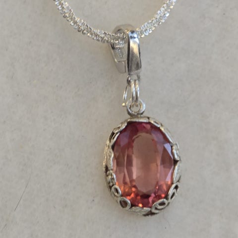 Et vakkert anheng og spesielt kjede i sølv 925 med rosa Safir. 16 x 13 mm.