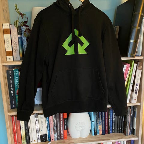 New Look hettegenser for herre i størrelse M. Genseren er grå og har korte ermer, hette med snøring og kengurulomme foran. Passer til hverdagsbruk og fritid.