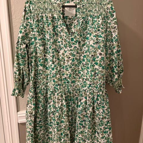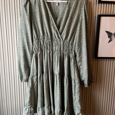 Nydelig blomstermønster, luftig og behagelig stoff. Pent brukt, kjøpt på Tise da jeg trodde den var i str 34. Må strykes, men ellers som ny.