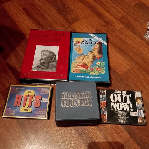 Country & Western 1 musikkassett-samling i boks. Sett med 6 lydkassetter med country- og westernmusikk. Boksen inneholder oversikt over spor og artister på innsiden av omslaget. Egner seg for avspilling på kassettspiller og som samlerobjekt for musikk på analogt format.