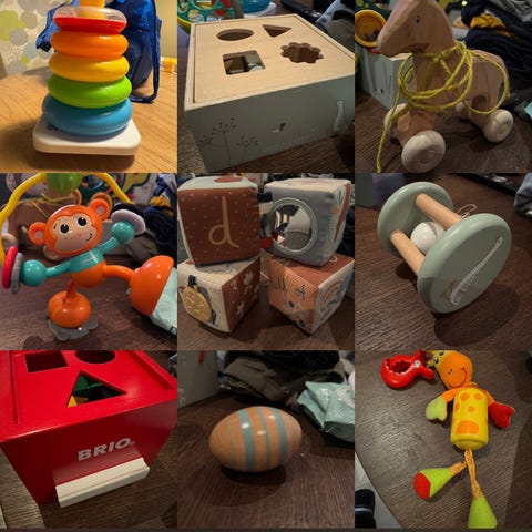 Stableleke i tre som gir øvelse i rekkefølge, farger og koordinasjon.