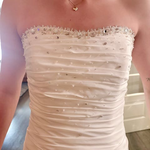 Selger brudekjolen min fra Agape. Nylig renset, og kjolen er helt fin. Veldig fin både med og uten bolero.