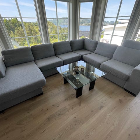 Stor og behagelig U-sofa med puff og bord