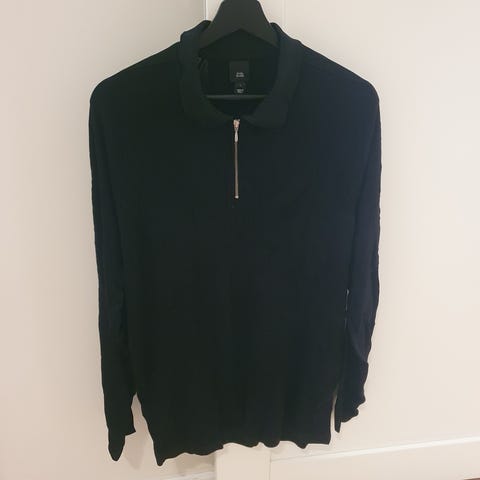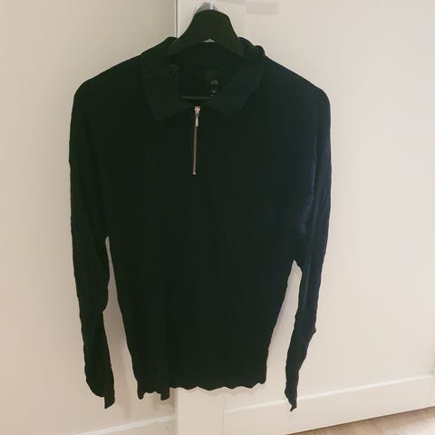 River Island genser for herre i størrelse M. Genseren er svart og har glidelås i halsen. Passer til hverdagsbruk eller som et ekstra lag på kjølige dager.