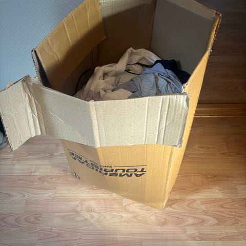 Fem esker med klær selges. Masse Gensere, t-skjorter, kjoler, jakker, vest, bukser, shorts, luer. Noe har så vidt vært brukt, noe lappen på, noe godt brukt men pent brukt. Må hentes på Fåvang. 🌞