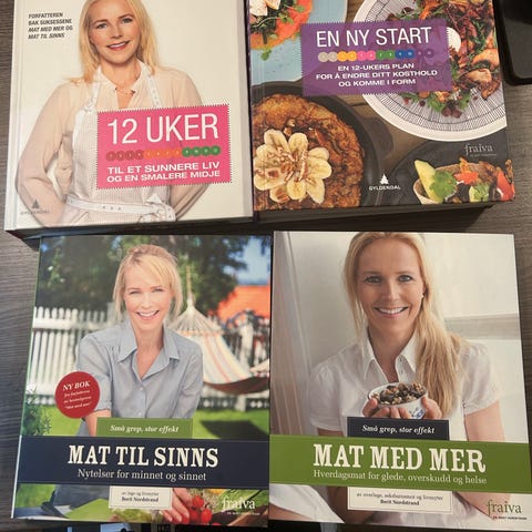 Selger flere kokebøker som bare har ligget til pynt på kjøkkenet. Veldig fine og mange gode oppskrifter.