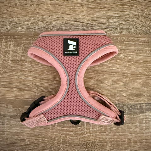 Feel Active hundesele i rosa farge. Selen er justerbar og passer til hunder med brystmål 30-40 cm. Den er såvidt brukt og har ingen synlig bruksmerker. Kjøpt på musti for 349kr