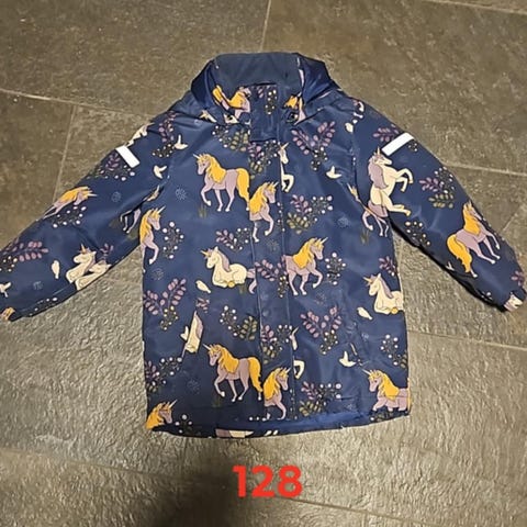 Superfin ytterjakke til jente med enhjørninger på.