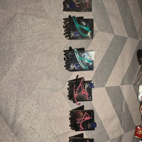 Mange forskjellige pins, blant annet mange OL Lillehammer pins