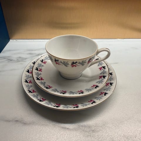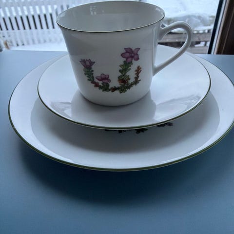 Arabia servise kopp, skål og tallerken med blomsterdekor