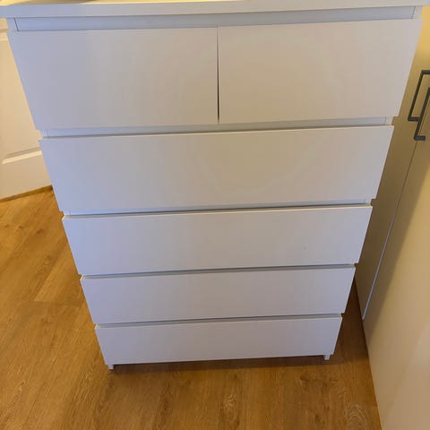 Kommode fra IKEA selges. Noen bruksmerker/hakk da den har vært med på flyttelass, men fungerer fremdeles som den skal:)