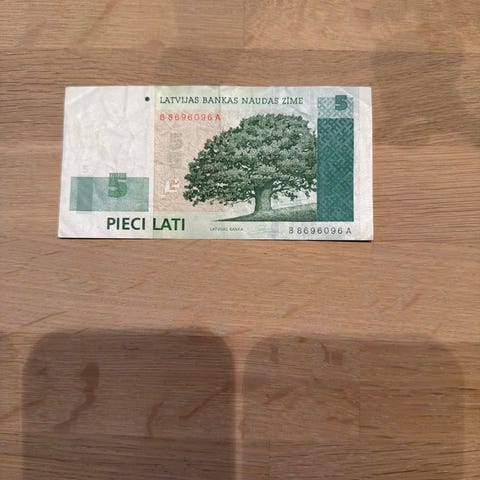 Latviske Lati 10 og 5 seddel og mynter