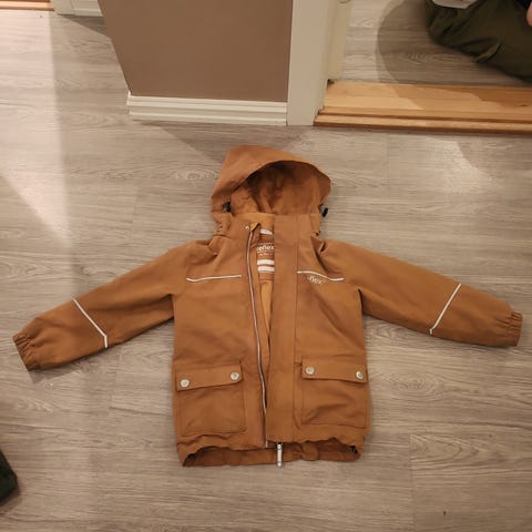 Skallsett fra Reflex. Bukse str 110 og jakke str 116. Fint å bruke i overgangene vinter/vår, og sommer/høst. Pent og lite brukt, ingen tegn til slitasje, hull ol