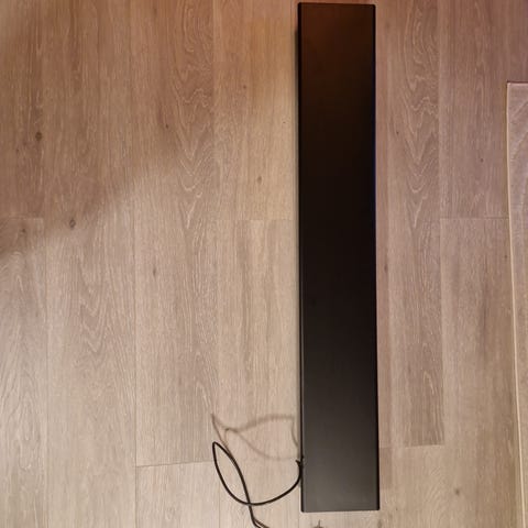 Svart panelovn 1000w. Med oppheng og skruer. Lite brukt. Termostat, kan tidsinnstilles. Kjøpt på elektroimportøren 2025