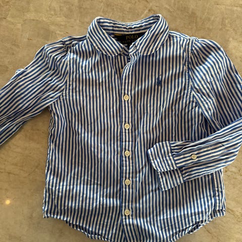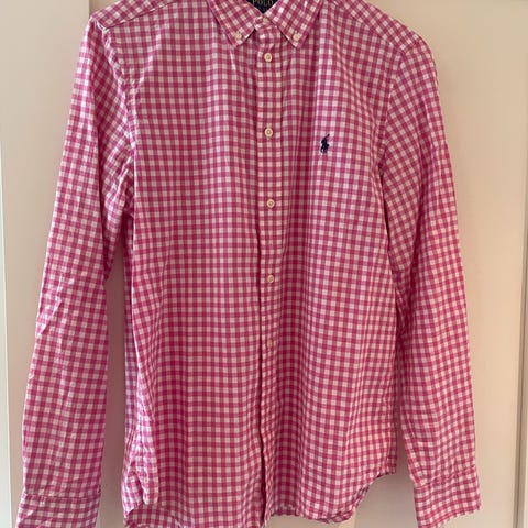 Polo Ralph Lauren skjorte for barn i størrelse 4/T4 år. Skal tilsvare 96-104 iflg Google . Skjorten er rosa og laget av bomull. Modellen har lange ermer, krage med små volangdetaljer. Pent brukt.