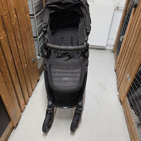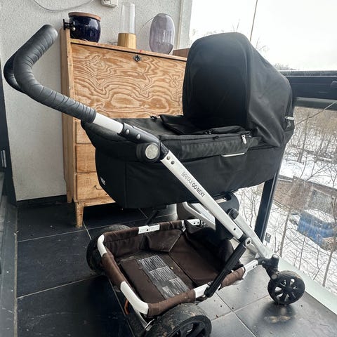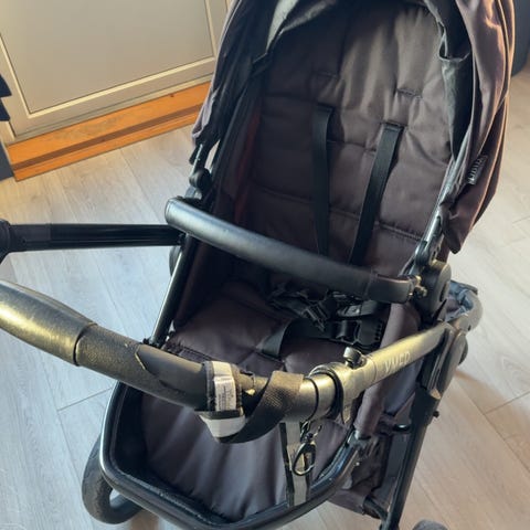Vognen basser ypperlig til bruk i barnehagen som sovevogn. Sittedel og babydel er i god stand. Rammen er godt brukt - hjulene har blitt reparert et par ganger, og vogna knirker litt.