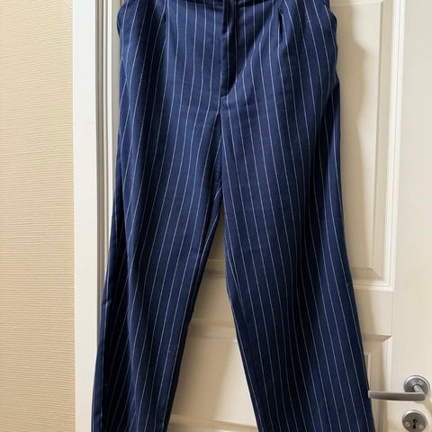 Brun/grå lett bukse i polyester/viskose miks, sval og behagelig på. Sitter litt løst oppe og har folder som gir fin fasong. Buksen går mer inn nede med snitt som gir fin finish og bevegelse i buksen. Kjøpt på Topshop i England, str 40, men heller mer mot en str. 38. Veldig fin til pumps. Brukt lite og er helt fin 🙌🏼