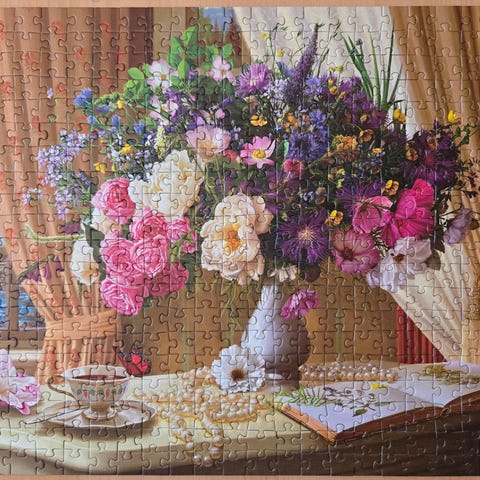 Puslespillet er lagt en gang og var komplett når jeg la det. Puslespillet ligger oppi en lynlåspose for å forhindre at du mister brikker på vei til deg.