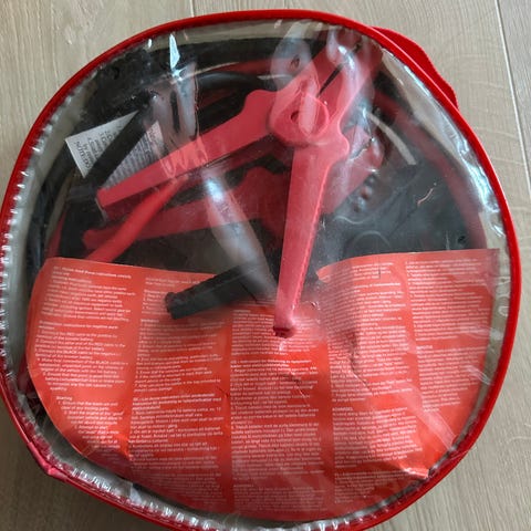 Startkabler 200A 3,5 m i rød og svart. Kabler med kraftige klemmer for tilkobling mellom bilbatterier ved start av kjøretøy med utladet batteri. Dimensjon 20 mm², strømstyrke opptil 200A og lengde 3,5 meter. Leveres i oppbevaringsveske med bruksanvisning for korrekt tilkobling og bruk.