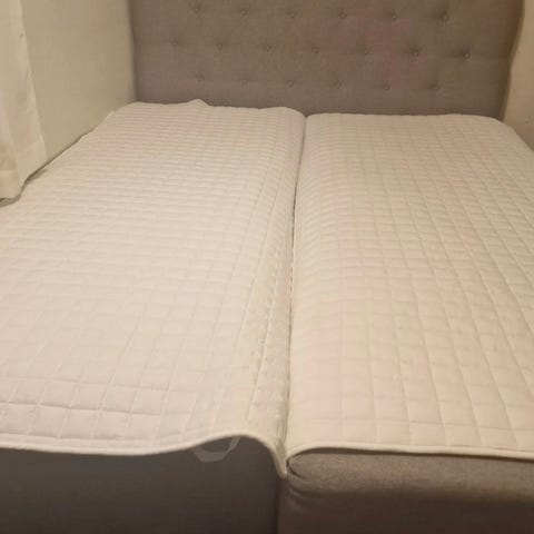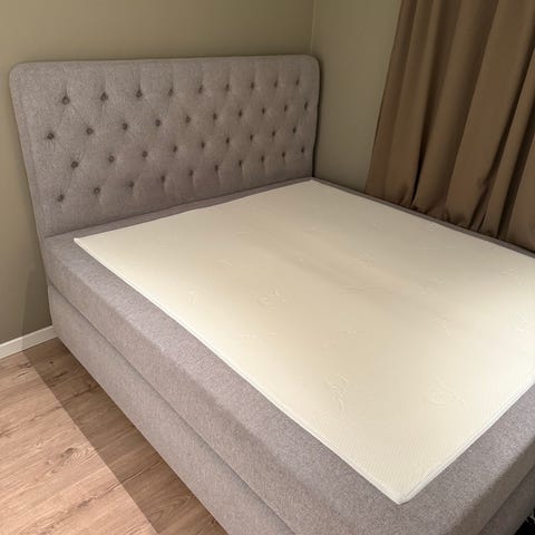Ekornes seng med svane madrass, Wonderland overmadrass og hodegavl