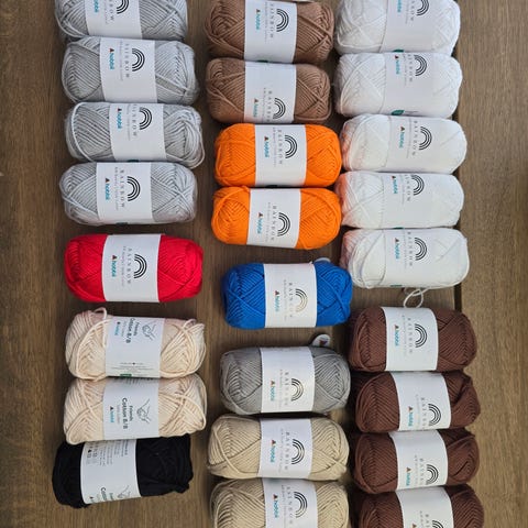 13 nøster Alpakka Forte fra Dalegarn og 8 nøster Fluffy Crush fra Trysilgarn/ House of Yarn selges for 600 kr. Samme fargekode = samme innfarging.