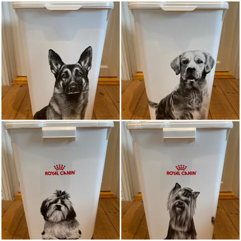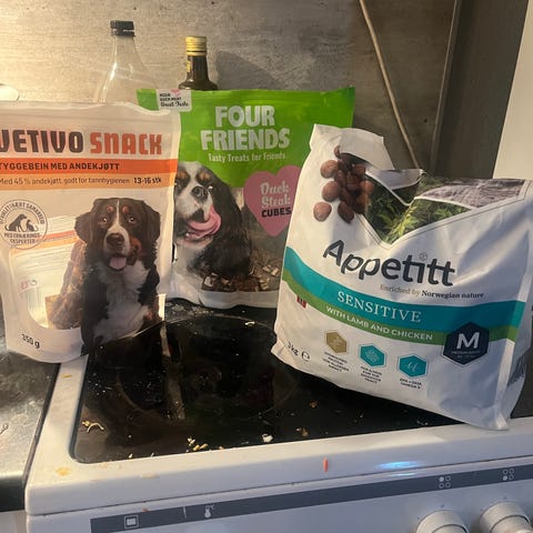 Tre fôrkasser i plast gis bort