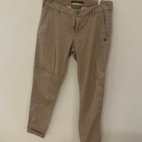 Scotch & Soda jeans for dame i størrelse M med livvidde W28. Buksen er i blå denim av bomull. Klassisk femlommersmodell med to baklommer, to frontlommer og myntlomme. Normal linning og smale ben. Passer til hverdagsbruk og kan kombineres med ulike topper og sko for både uformelle og mer pyntede antrekk.