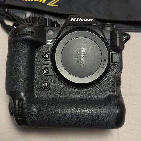 Nikon digitalt speilreflekskamera. Kamerahus med bærestropp, uten objektiv montert på bildet. Egnet for fotografering med utskiftbare objektiver og tilbehør som passer Nikon sitt speilreflekssystem. Digitalt kamera med optisk søker og manuelle innstillingsmuligheter av blant annet lukker, blender og ISO, avhengig av valgt objektiv og kamerainnstillinger. Se gjerne YouTube om både kamera og objektiver.