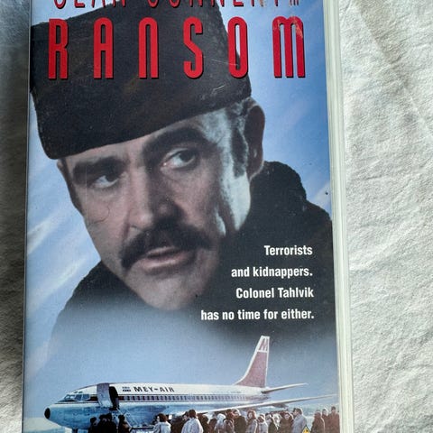 Ransom VHS-film. Norsk utgave av spillefilmen «Ransom» på videokassett (VHS). Kassetten leveres i original plastboks med omslagstekst på norsk. Egnet for avspilling på standard VHS-spiller for samlere eller de som fortsatt bruker dette formatet.