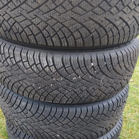 Skoda felger med piggfri dekk, ene felg er slipet ned på innsiden,112 boltesirkel