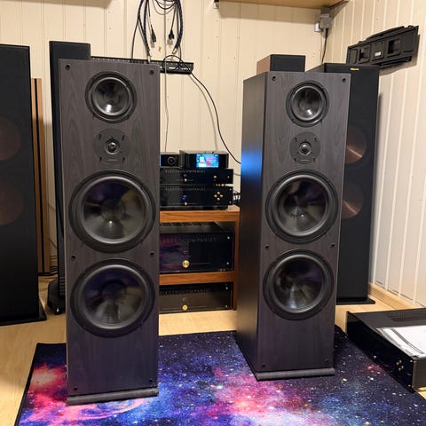 Meget gode høyttalere med behagelig diskant og overraskende stor og tung bass tross liten størrelse!