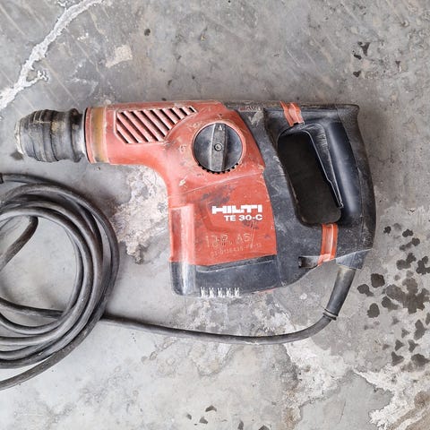 Hilti TE 15 borhammer med kabel. Elektrisk borhammer egnet for boring og meisling i betong og mur. Maskinen har pistolgrep og SDS-plus chuck for raskt bytte av bor og meisler. Leveres med fastmontert strømkabel slik den fremstår på bildene.