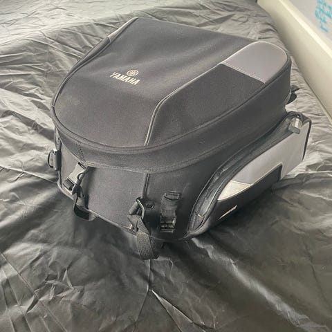 Original Harley toppboks i skinn , låsbar. Braketten som sitter på vet jeg ikke hva passer på., se målene. Må hentes på Gjøvik.