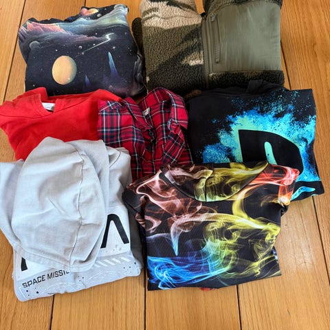 Fin, liten klespakke til (8), 9 og kanskje opp til ti år. Flere av plaggene sier 134-140.