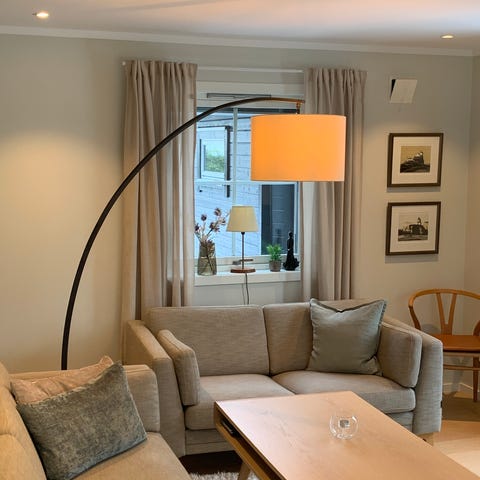 Flott stålampe som kan lyse opp stuebordet uten å lage merker i taket.