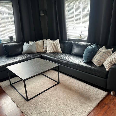 En god og stor hjørnesofa av merke Hjort Knudsen. Både sitte og rygg putene er i god stand.