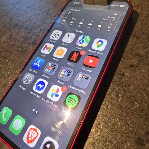 Apple iPhone 13 mini med 128 GB lagringsplass i rød farge.
