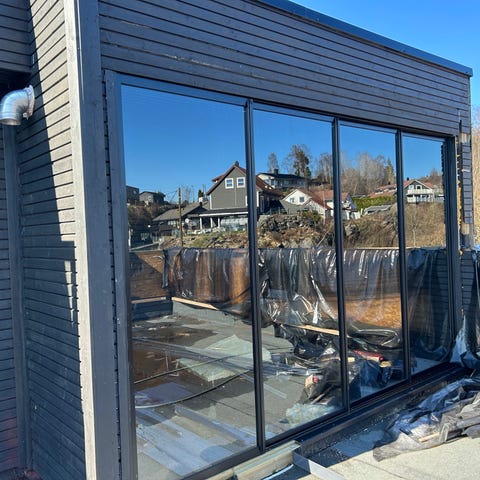 Selger en solid og stilren heve/skyvedør fra NORD i sort utførelse (RAL 9004), med fast karm og skyvedør.
