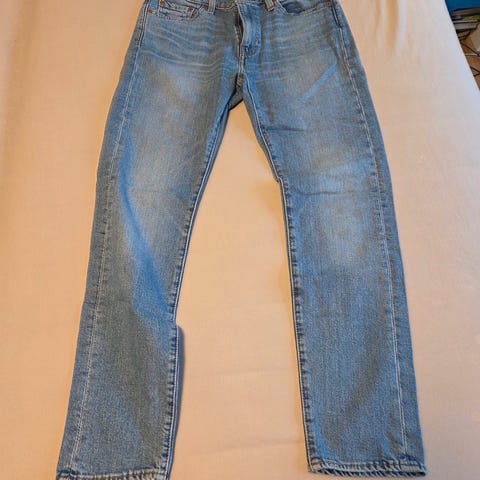 Levi's 501 for dame i størrelse W27 og L26. Buksen er i lys blå denim, klassisk femlommersmodell med knapp i livet. Vil si denne blir litt stor i str da den er for vid i livet for meg.