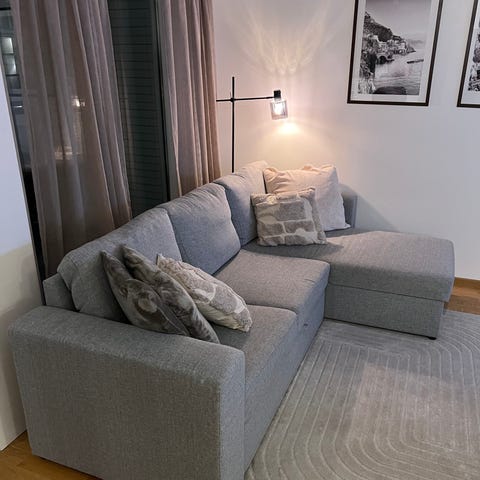 Sofaen selges komplett og ikke i separate deler, og vi anmoder om seriøse henvendelser. Den har vært i mitt eie i snart 3-4 år, men fremstår i utmerket stand og er pent brukt. Vi ønsker en rask avtale, fortrinnsvis i uke 9 eller 10. Det er ingen synlige sittemerker eller tegn til slitasje.