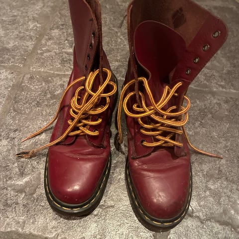 Dr. Martens støvler i størrelse 39. Klassiske svarte snørestøvler i skinn med karakteristisk gummisåle. Passer til hverdagsbruk og til fint