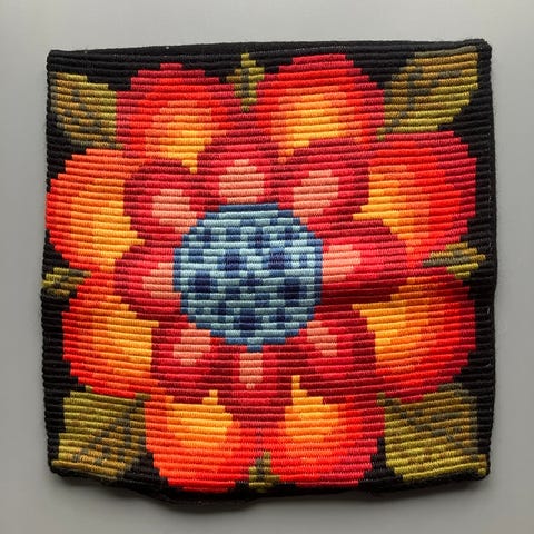 norsk - broderi - håndbrodert - håndarbeid - husflid - vintage - retro - modern - rød - svart - hvit - tekstilkunst - folkekunst - kunsthåndverk - blomster
