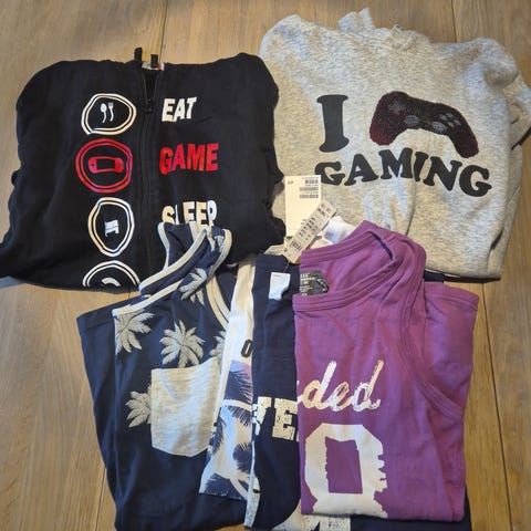 Pent brukt klespakke for gutt str. 146/152 selges. 10 stk gensere og 1 stk t-shorte.