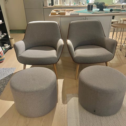 Pent brukt sofa med tilhørende stol selges, er noen flekker men trekkene kan tas av og vaskes☺️