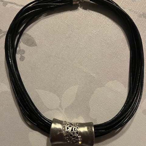 Smykket består av et meget spesielt anheng tredd på en snor med lås.